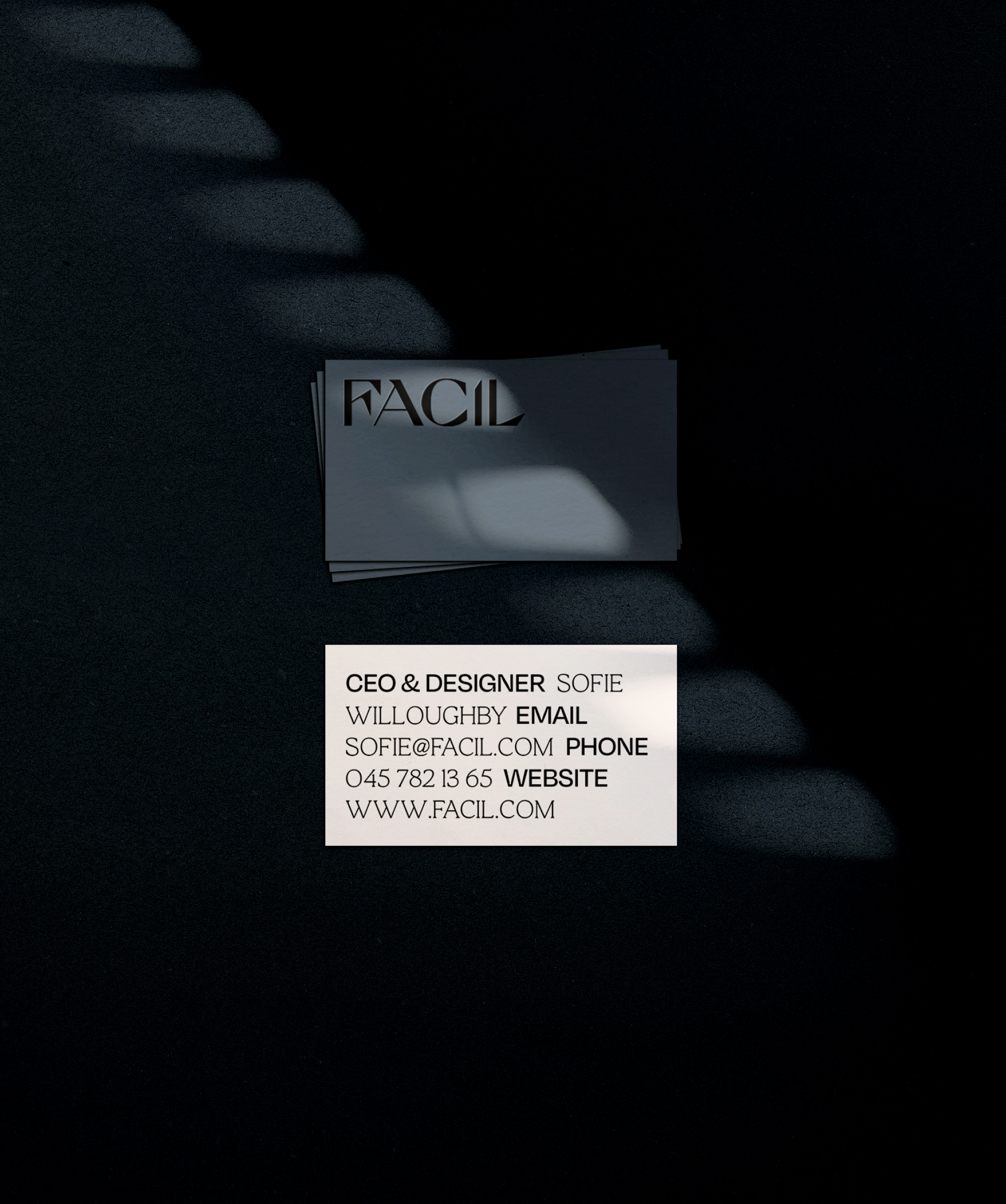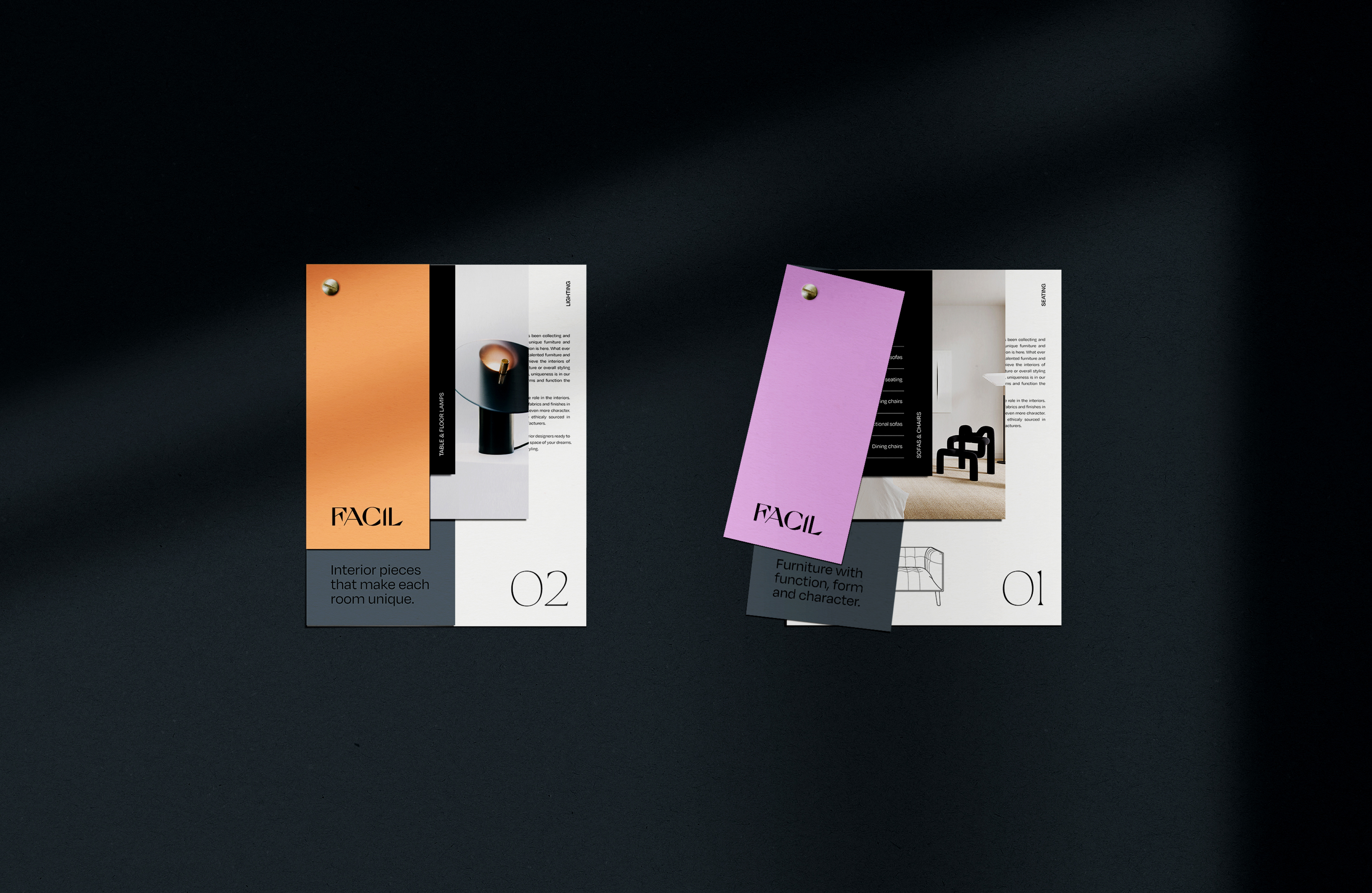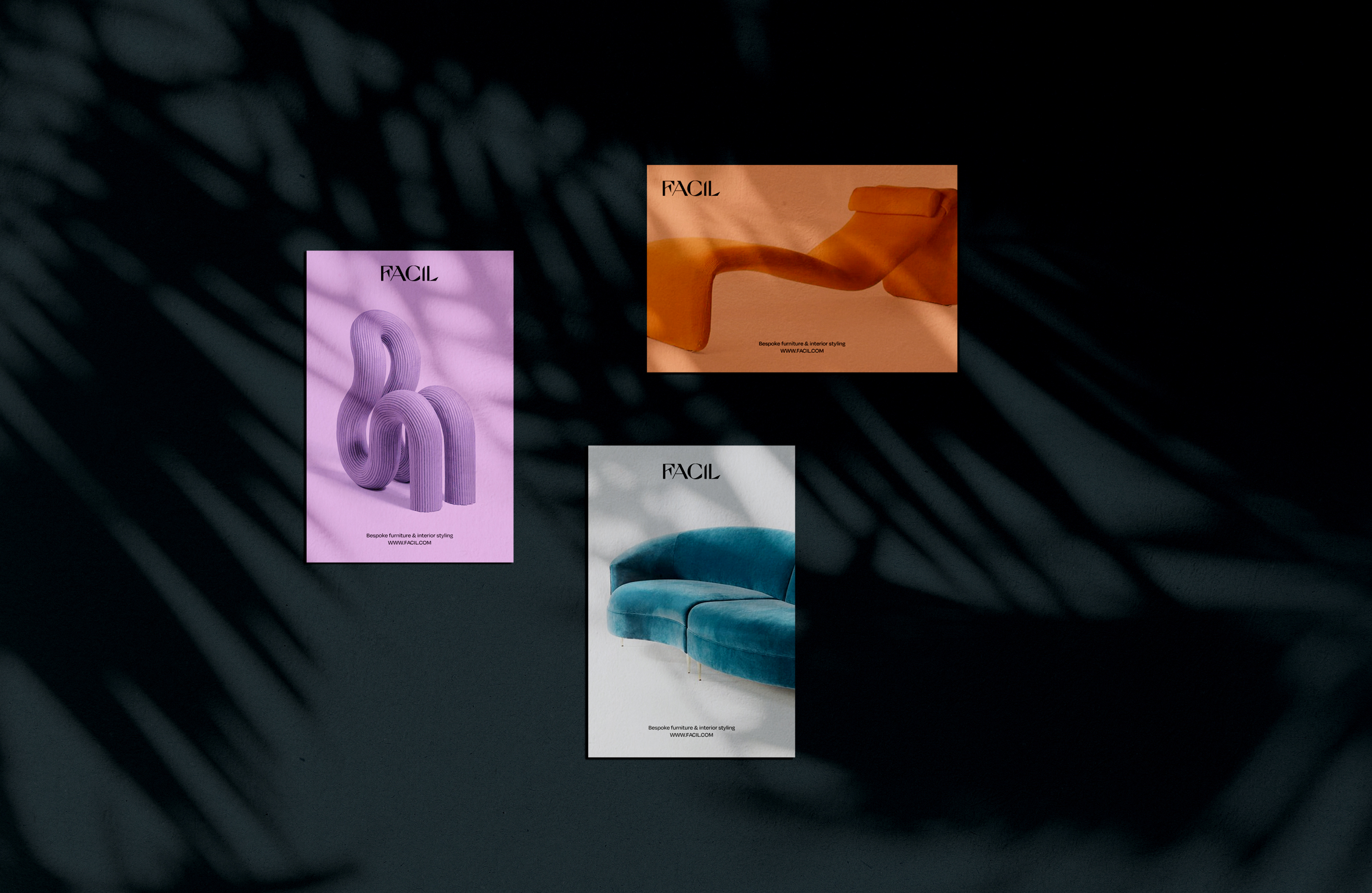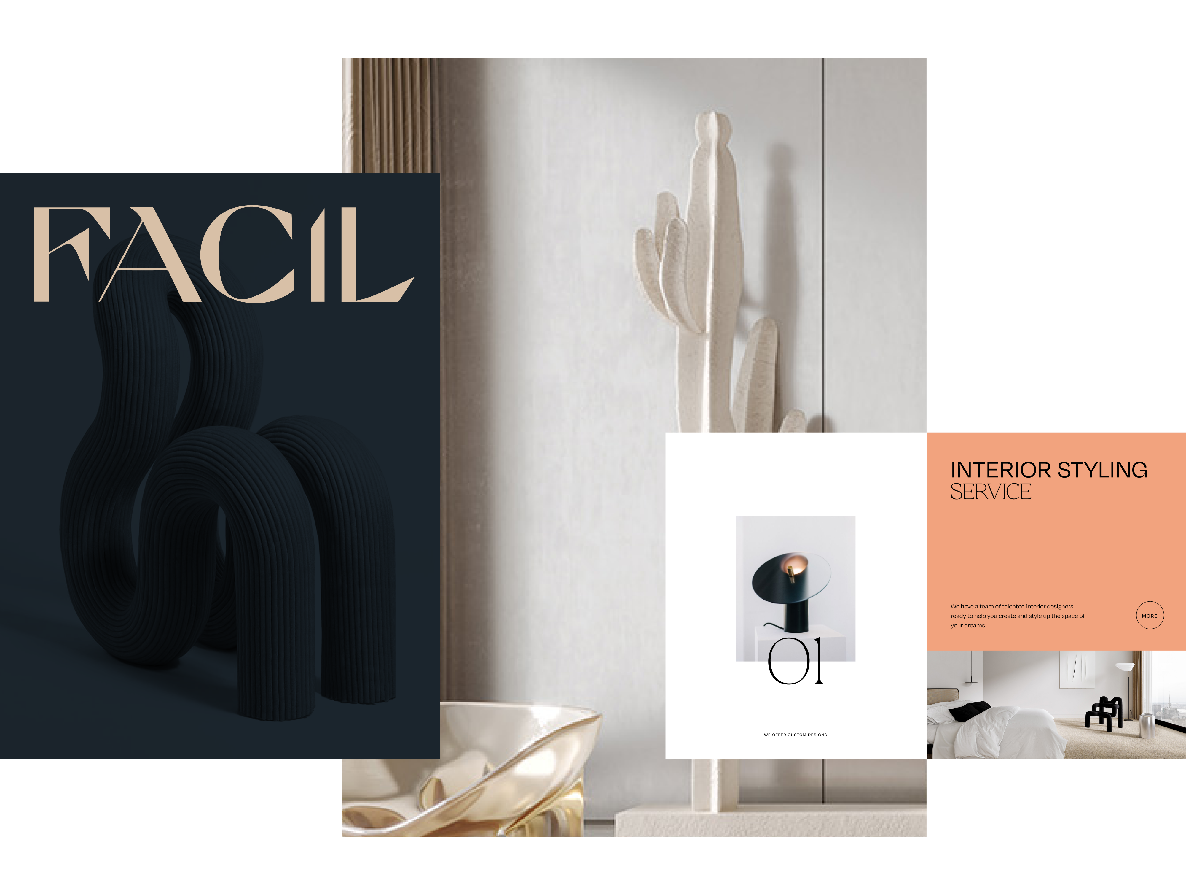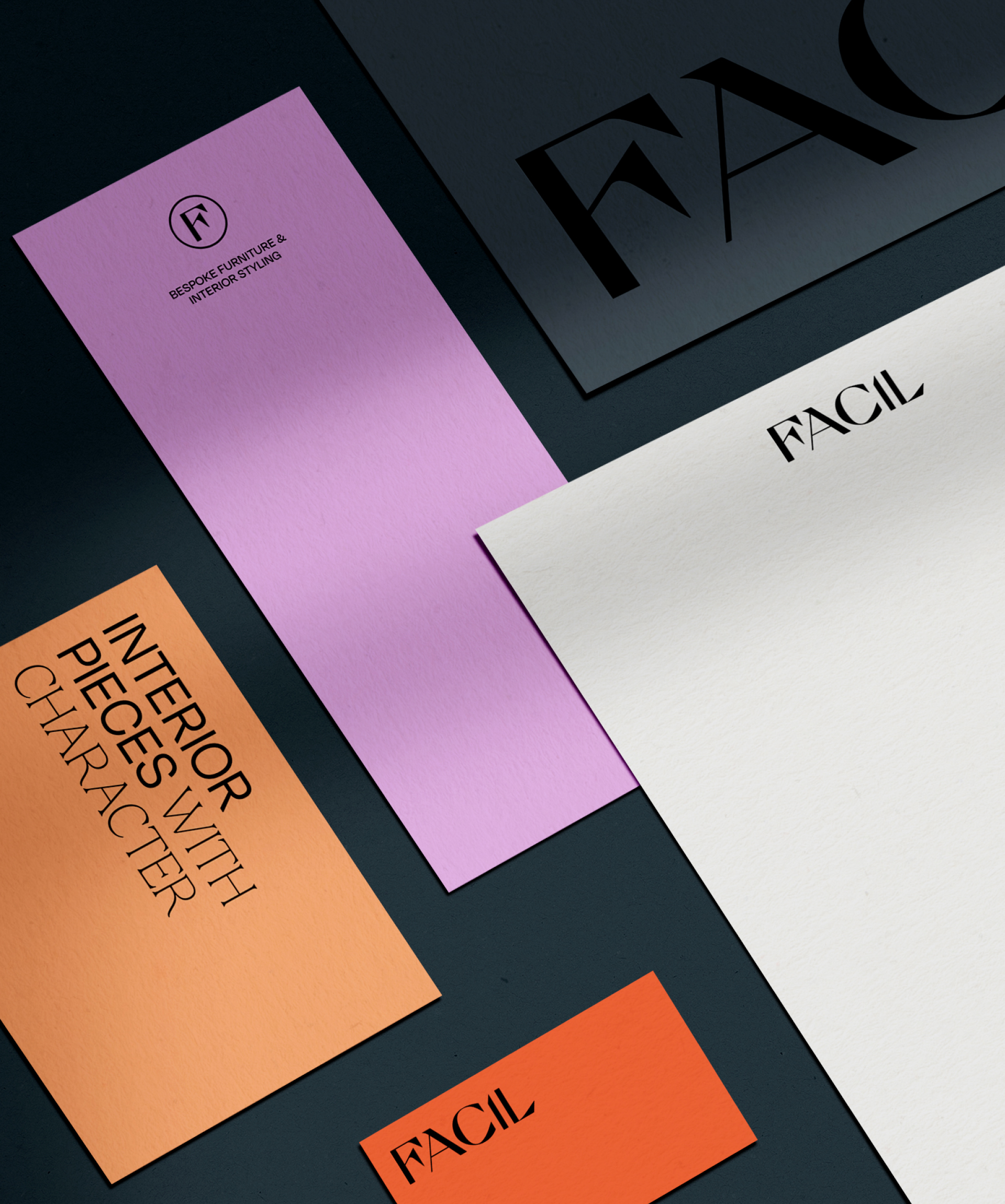 Facil is an interior design studio offering bespoke furniture and interior styling service. With a mission to turn interior elements into exquisite art pieces, the brand identity could not be anything ordinary.