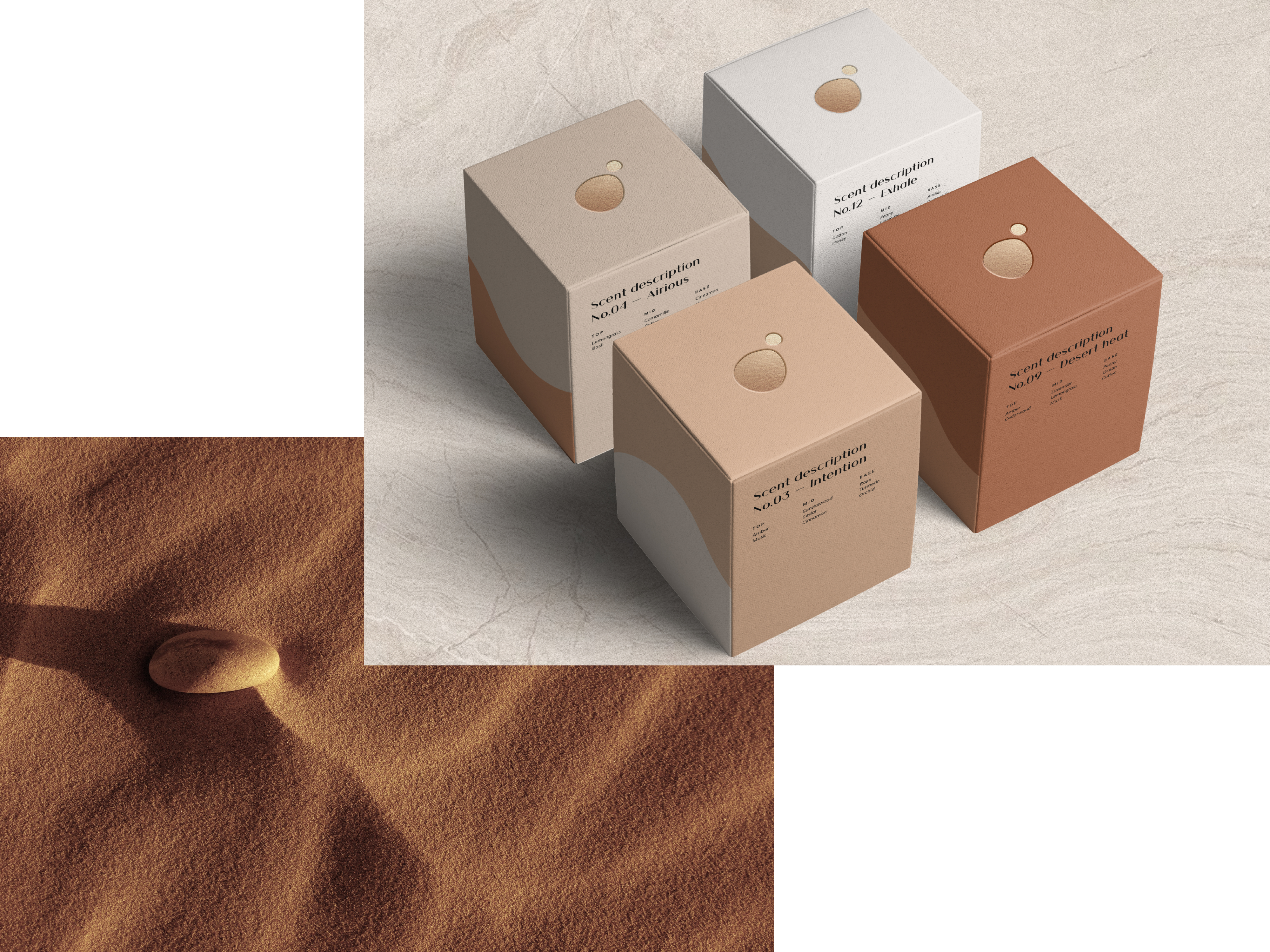 Inspired by the nature – the ocean, sand dunes, natural stones – we implemented a soft and monochrome colour palette and an organic brand pattern. It builds a connection to the earthy theme yet gives enough variety for creative brand visuals. The gold foil and letterpress finishes utilised on the packaging and printed materials create a subtle but nuanced textural experience which gives a luxurious feel to the overall brand experience.